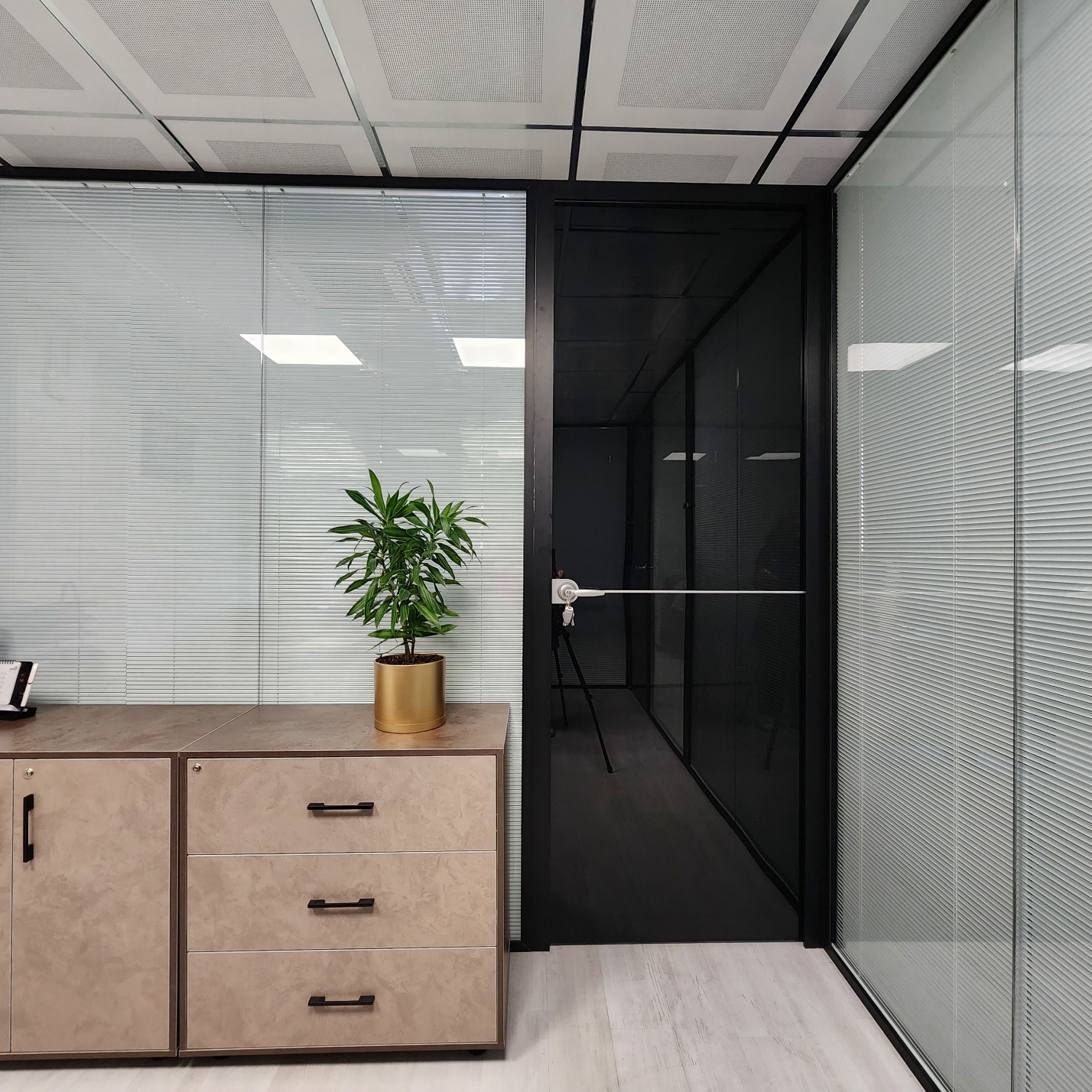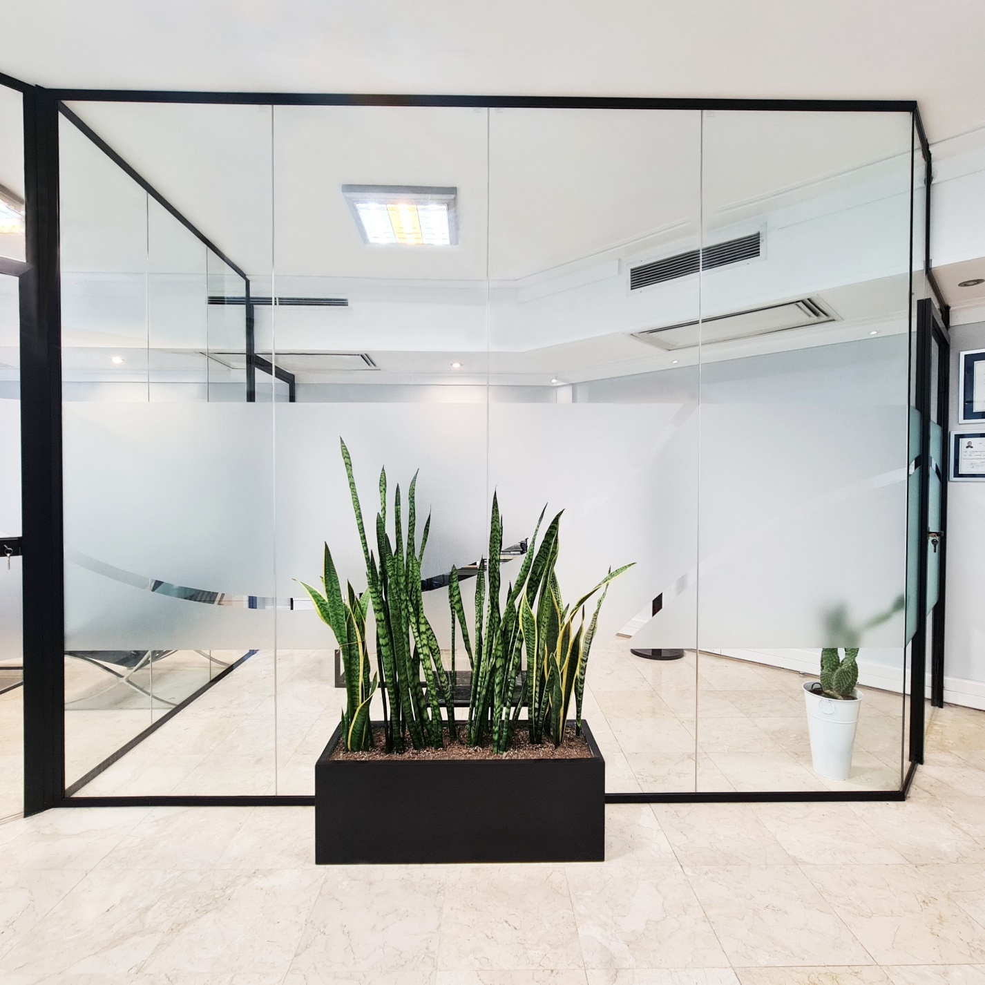 • پارتیشن فریم‌لس یا پارتیشن ستون دار: طراحی مدرن، مینیمال و خاص. گزینه‌ای محبوب در دفاتر امروزی.